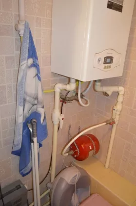 Коммуникации: вода, свет, газ - центральные, отопление и вода через надежный 2-контурный газовый котел Ariston; канализация - септик 4 куба.