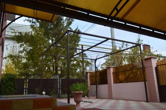 Во дворе есть виноград, цветущий сад, небольшой розарий, беседка, мангальная зона, санузлы и душевые,