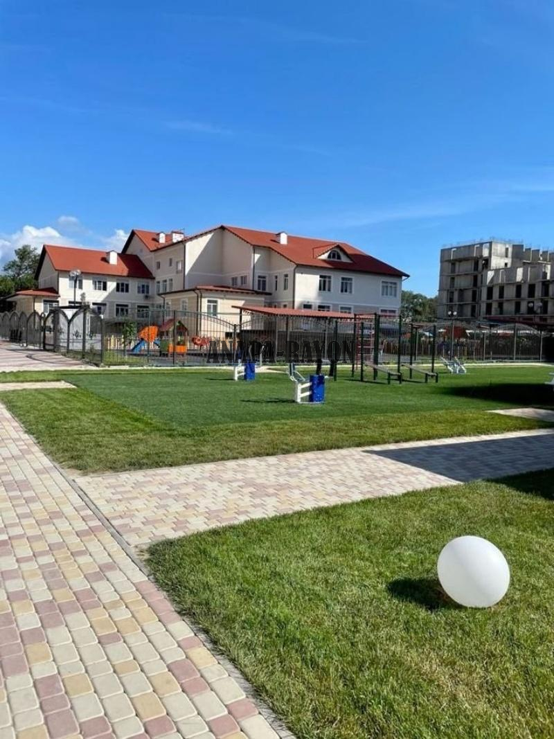 На территории комплекса свой детский сад, множество детских площадок, зона барбекю, прогулочная аллея, фонтаны.