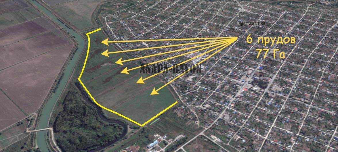 Продается земельный участок сельхозназначения для производственных целей.В непосредственной близости от ст. Варениковская. На участке ранее располагались 6 прудов ( в настоящее время пруды осушены, но возможно восстановить работоспособность). Есть также дополнительно свидетельство о праве собственности на гидросооружения площадью 25300 кВ.. вдоль участка расположен Адагумский канал. Возможно использовать как пруды, как просто землю для сельхозпроизводства, или иных целей с учетом расположения примыкающего к улицам станицы. На участке есть источник энергоснабжения.